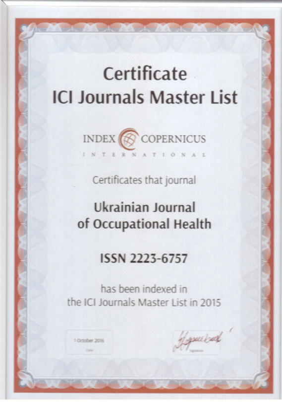 Журнал включен в перечень научных специализированных изданий Украины (категория «Б») по медицинским специальностям, код 222 (Приказ МОН Украины № 1301 от 15.10.2019 г.), и по биологическим специальностям, код 091 (Приказ МОН Украины № 1643 от 28.12. 2019)